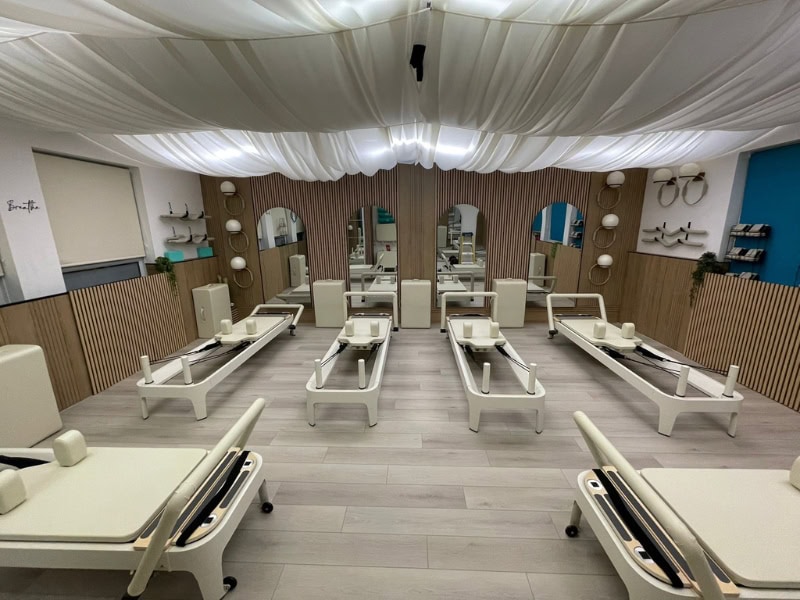 Delivered custom cream Pilates reformers to match the soft interior — creating a refined, cohesive boutique studio.